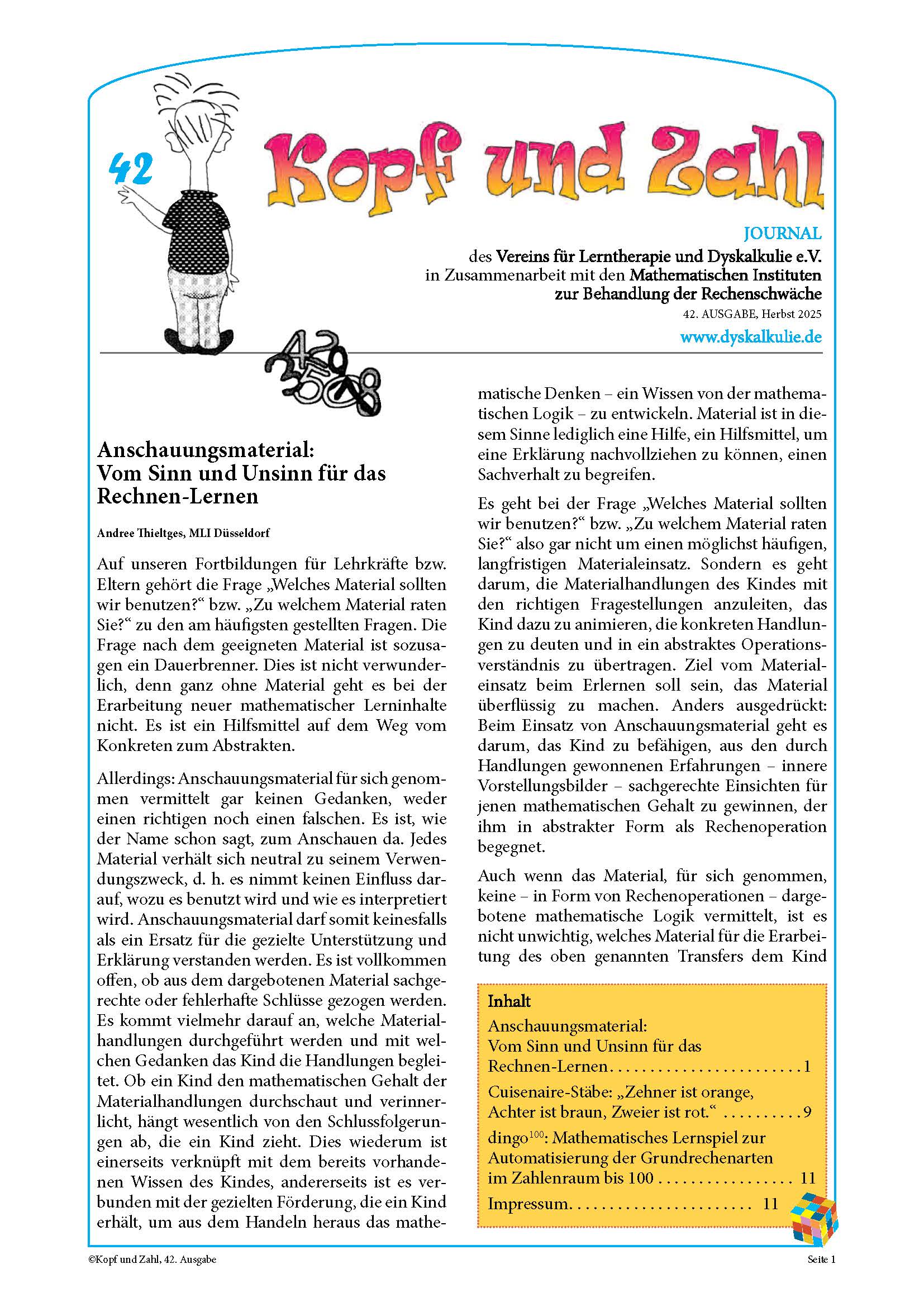Fortbildungen und Hilfen für Eltern, LehrerInnen und andere Fachkräfte (Pädagogen, Psychologen etc.) im Bereich Rechnen und Lernen.